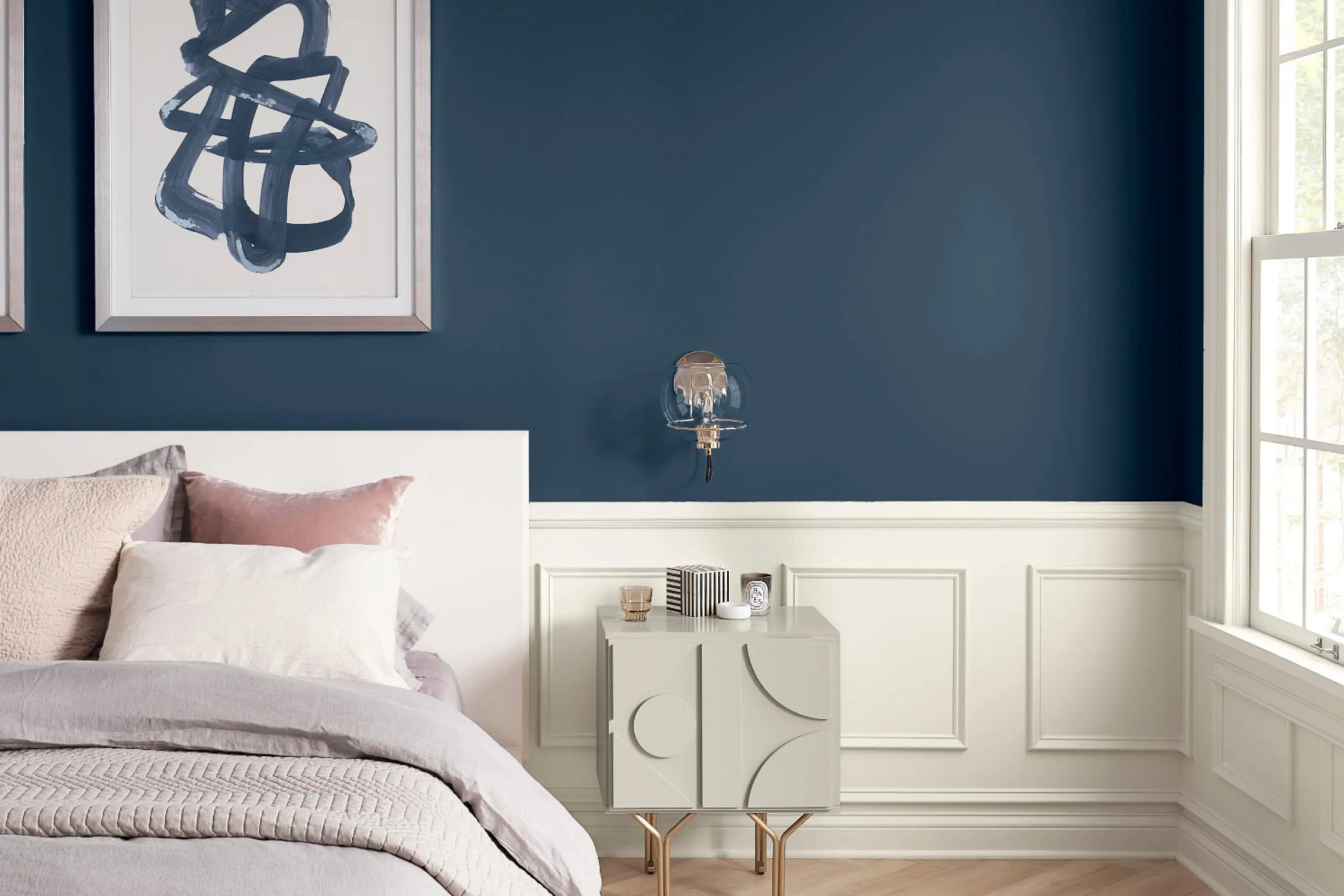 Choosing the right blue for a bedroom depends on more than just taste — it’s about light, feeling, and personality. I always start by studying how much natural light the room gets. If it’s a bright, sunny room, I lean toward cooler or deeper blues like Naval or Van Deusen Blue because they hold their color without looking washed out.