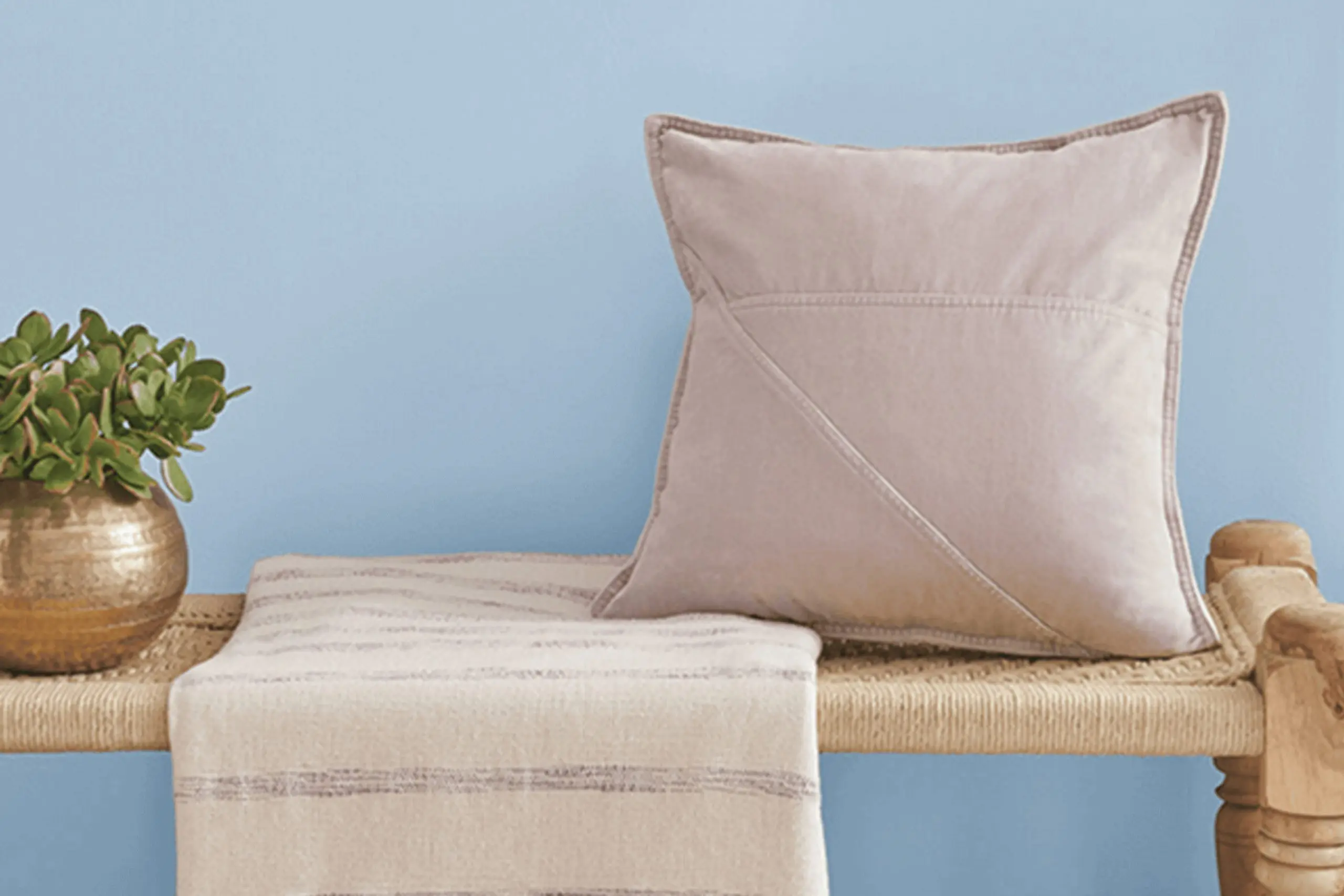 The pale pink and grey undertones help keep the color balanced and soothing, no matter the lighting. This makes Blissful Blue an excellent choice for rooms where creating a relaxed atmosphere is key, like bedrooms or bathrooms.