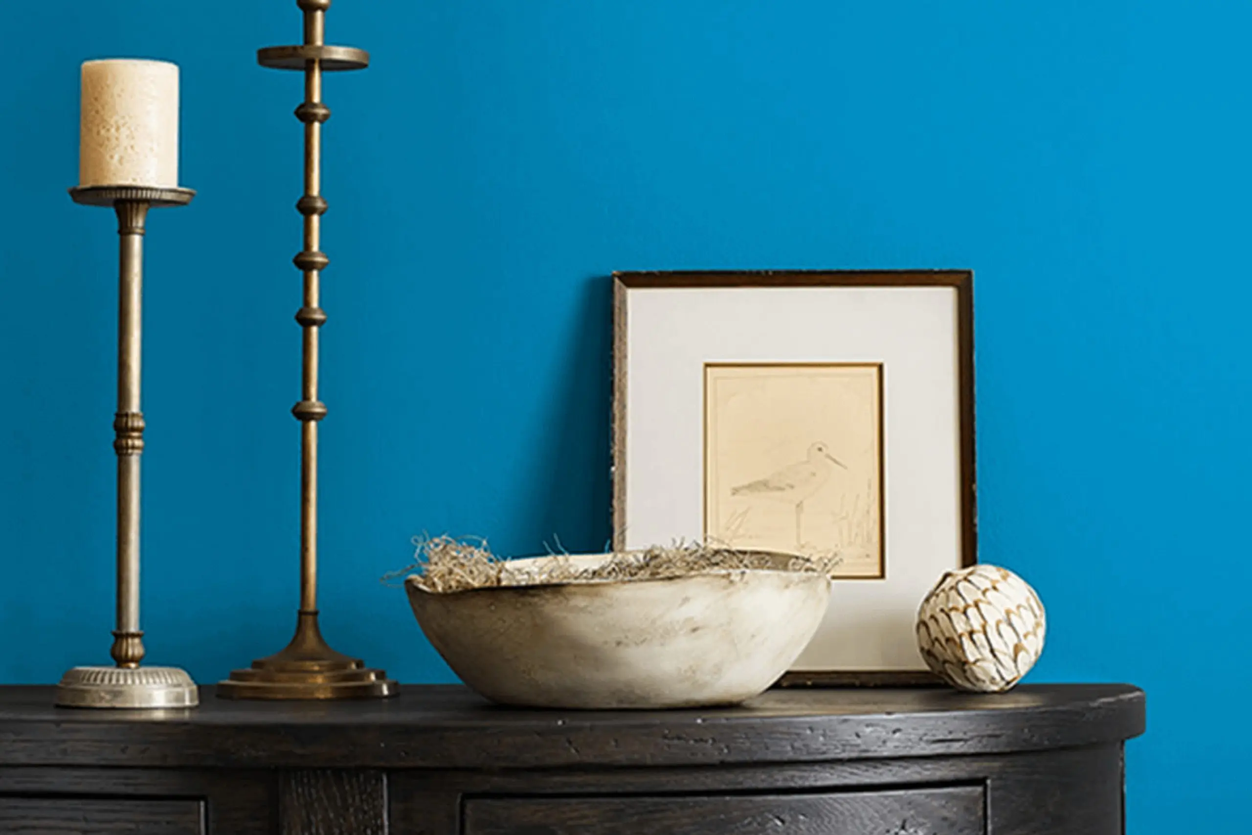 On the other hand, Blue Chip is a deeper and more vivid blue. It has a bold presence, which works well in areas where you want to make a strong impression, such as living rooms or dining areas. Because it’s a darker shade, it adds a sense of depth and can make large rooms feel more gathered and intimate.