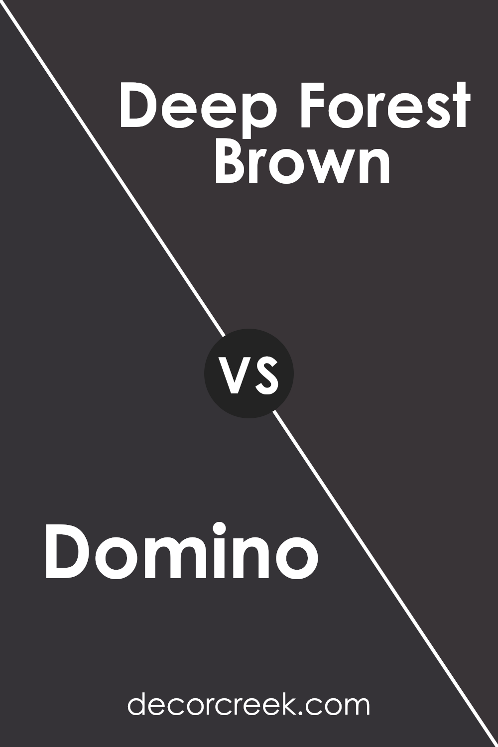 Both colors are quite dark, but while Domino leans toward a cooler, more neutral palette, Deep Forest Brown brings warmth and a natural feel. Depending on the atmosphere you want in a room, either could be a great choice. Domino offers a more crisp, clean backdrop, whereas Deep Forest Brown adds a touch of warmth and grounding.
