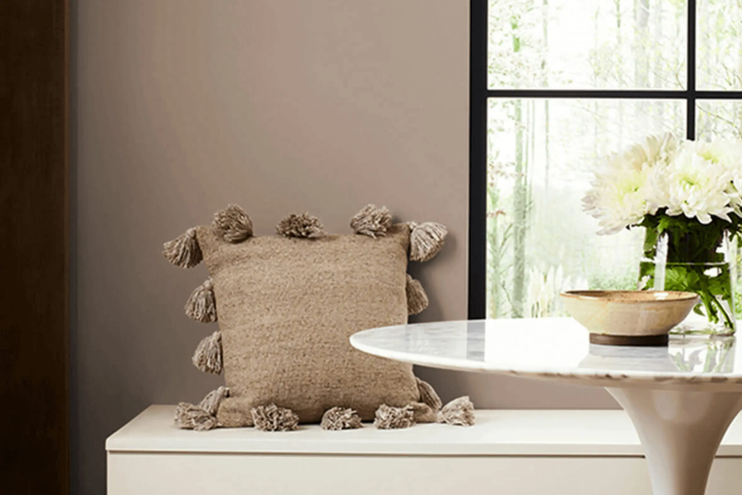 When paired with colors like Tiki Hut and Threshold Taupe, the overall aesthetic is warm and welcoming. Tiki Hut is a deeper brown that can bring a sense of coziness and grounding to a room, while Threshold Taupe adds a slightly lighter touch, keeping spaces feeling airy yet cozy.