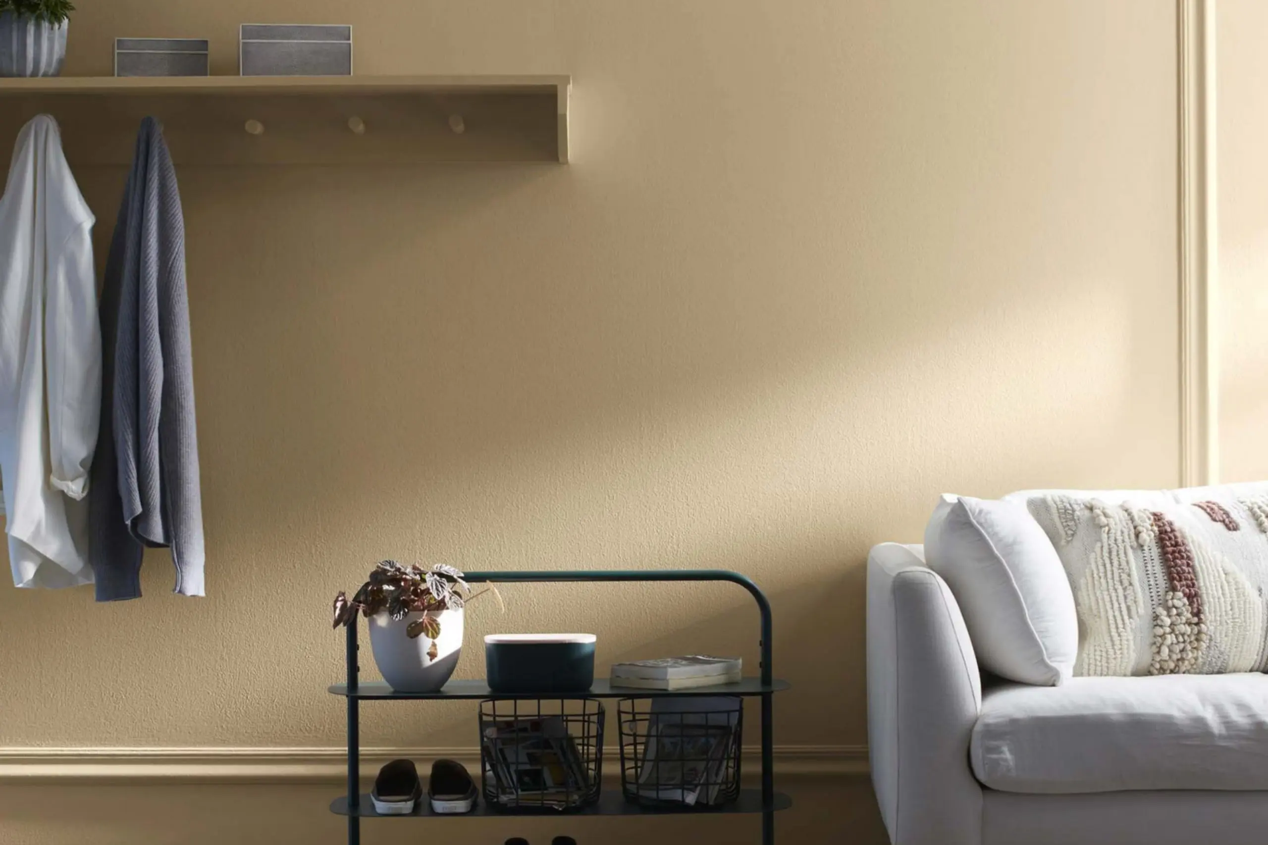 It pairs well with darker woods and rich textiles, making it ideal for living rooms or bedrooms looking to achieve a homey atmosphere. This color is especially effective in rooms with natural light, as it brings out the golden tones.