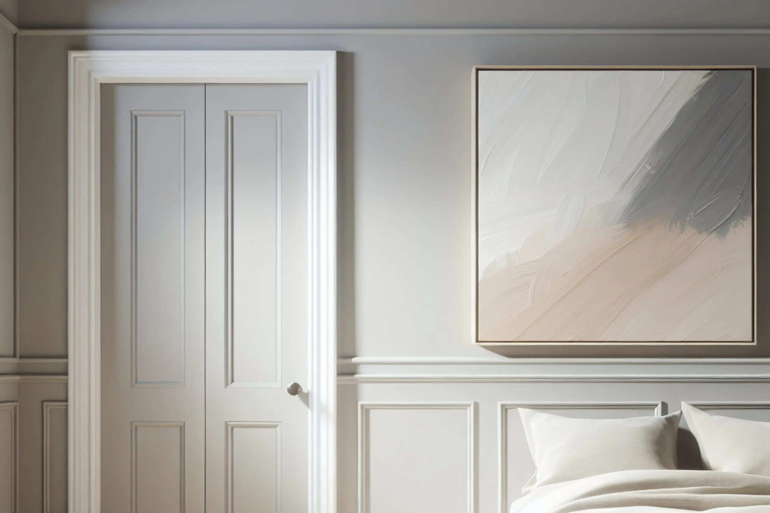 Shell White (SW 8917) is a gentle and light color that offers a barely-there contrast to Proper Gray, ensuring a soft and seamless transition between the wall color and the trim. This can help in creating a gentle, cohesive look in a room.