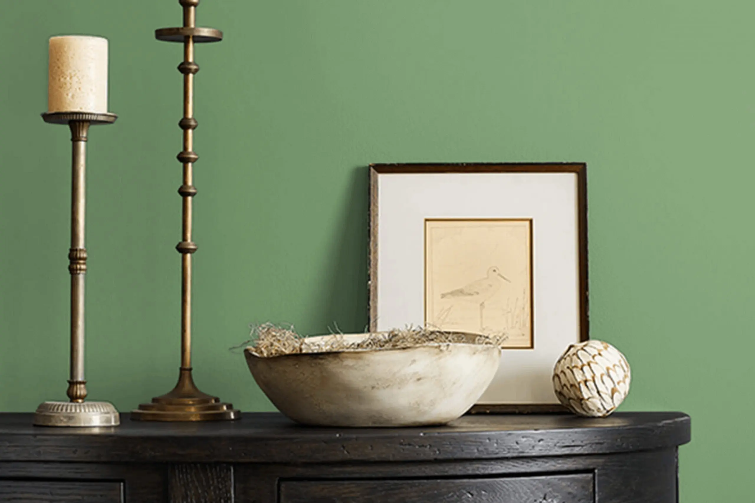 You can also use it in smaller doses, like on an accent wall or within decorative pieces, if painting an entire room seems too much. This approach still adds brightness to a space, without overwhelming it. Mixing Reseda Green with softer colors or rich textures, like soft blues or plush fabrics, can make your home feel welcoming and stylish.