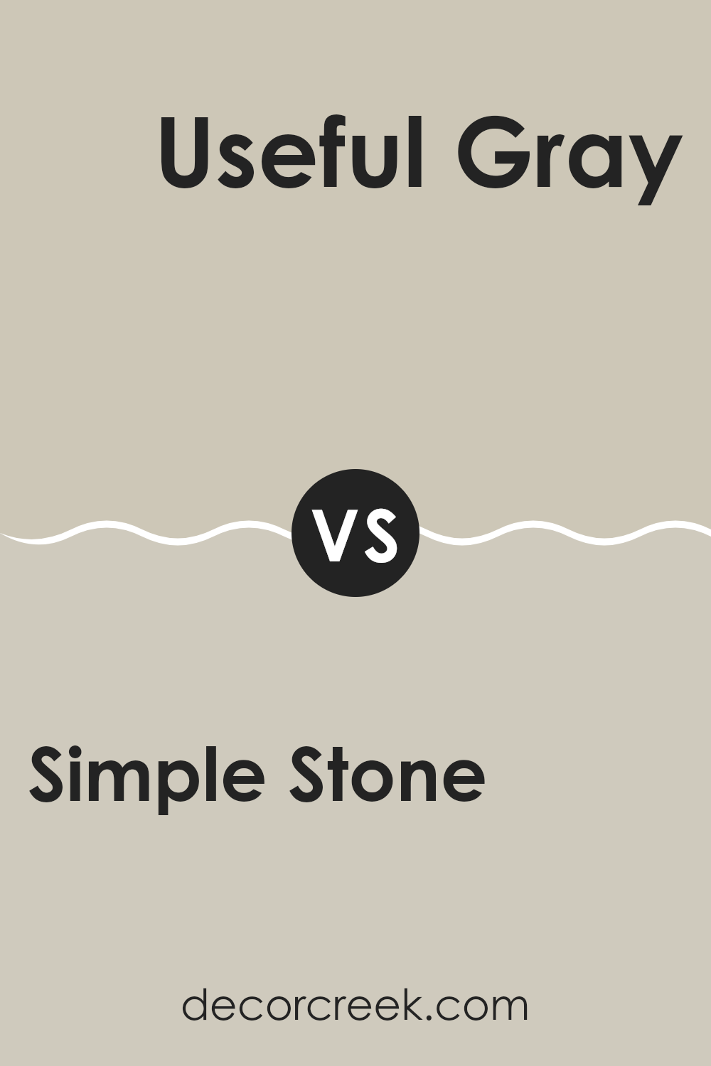 Both colors can complement different styles of decor and pair well with other colors. Simple Stone might be more suitable for modern, minimalist spaces due to its lighter feel, whereas Useful Gray can add a touch of warmth to traditional settings.