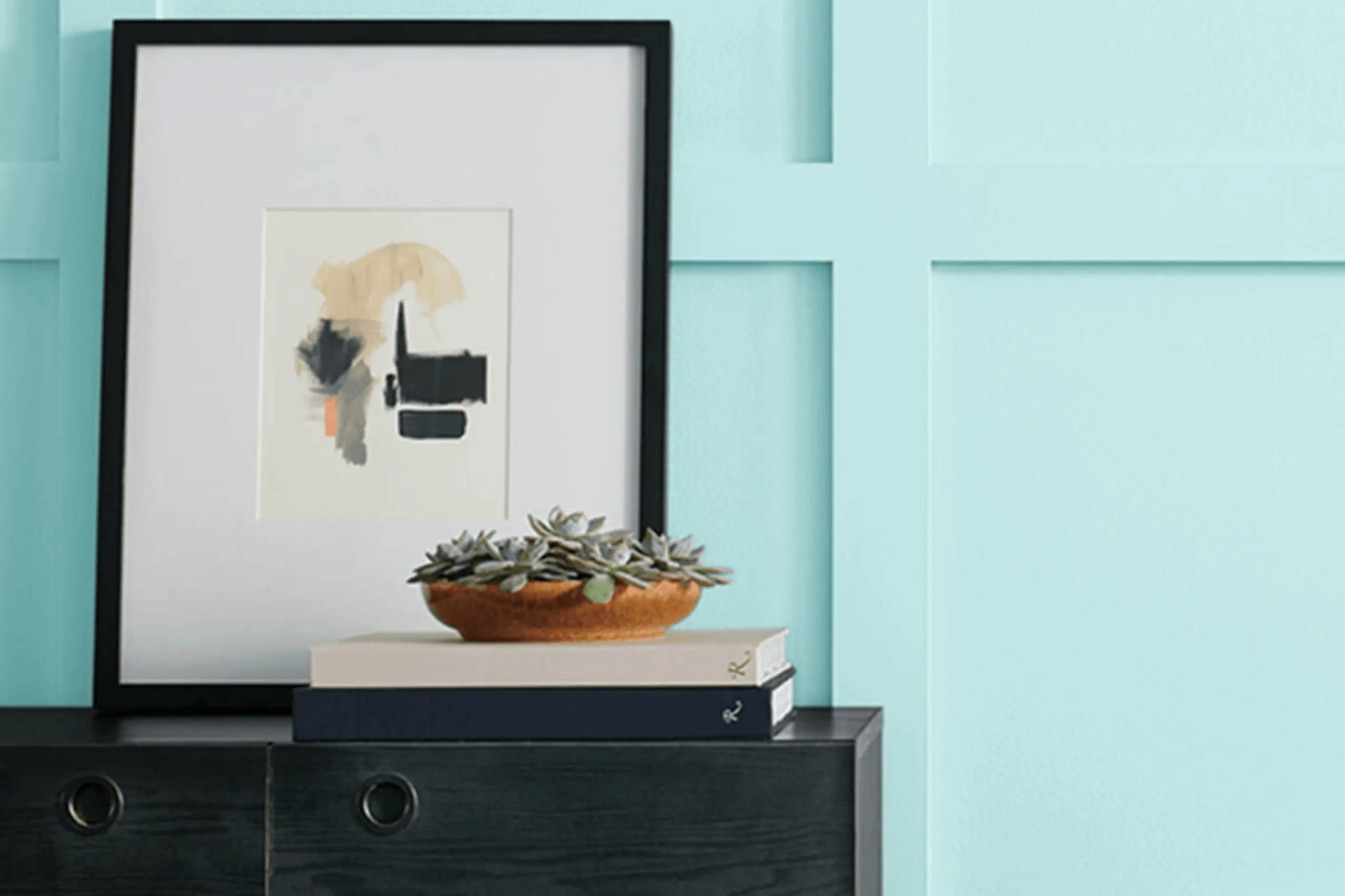 Paired with white trim, it offers a crisp and clean look, while natural wood tones can add warmth, balancing out the coolness of the aqua. Whether used on all four walls or as an accent, this color can bring a cheerful and welcoming energy to any setting, making it a popular choice for those looking to refresh their living environments.
