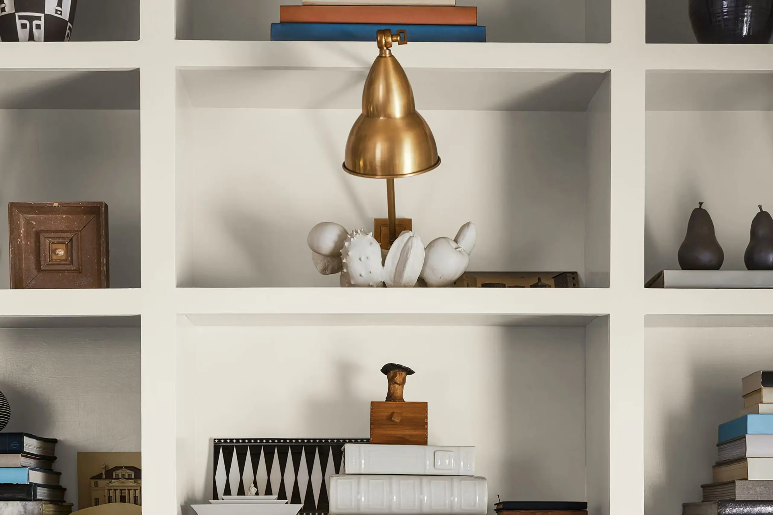 Vintage Vogue on an accent wall brings rich green drama, and Hale Navy in the study adds bold, confident contrast. The darker tones ground the lighter neutrals and complete the layered whole-house palette.