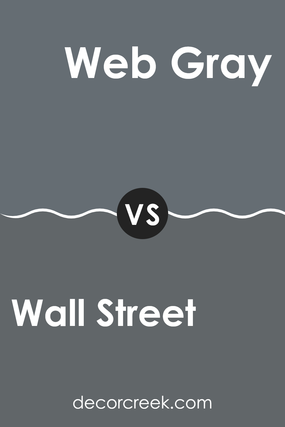 Both shades can refresh a room’s appearance, with Wall Street providing a more grounded, traditional feel, and Web Gray presenting a lighter, airier atmosphere. Each color, depending on the room’s lighting and the accompanying decor, has its unique appeal and can significantly affect the mood and style of a space.